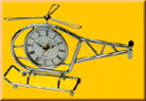 Uhr in verchromten Draht eingefaßt in der Form eines Hubschraubers - originell und schön.